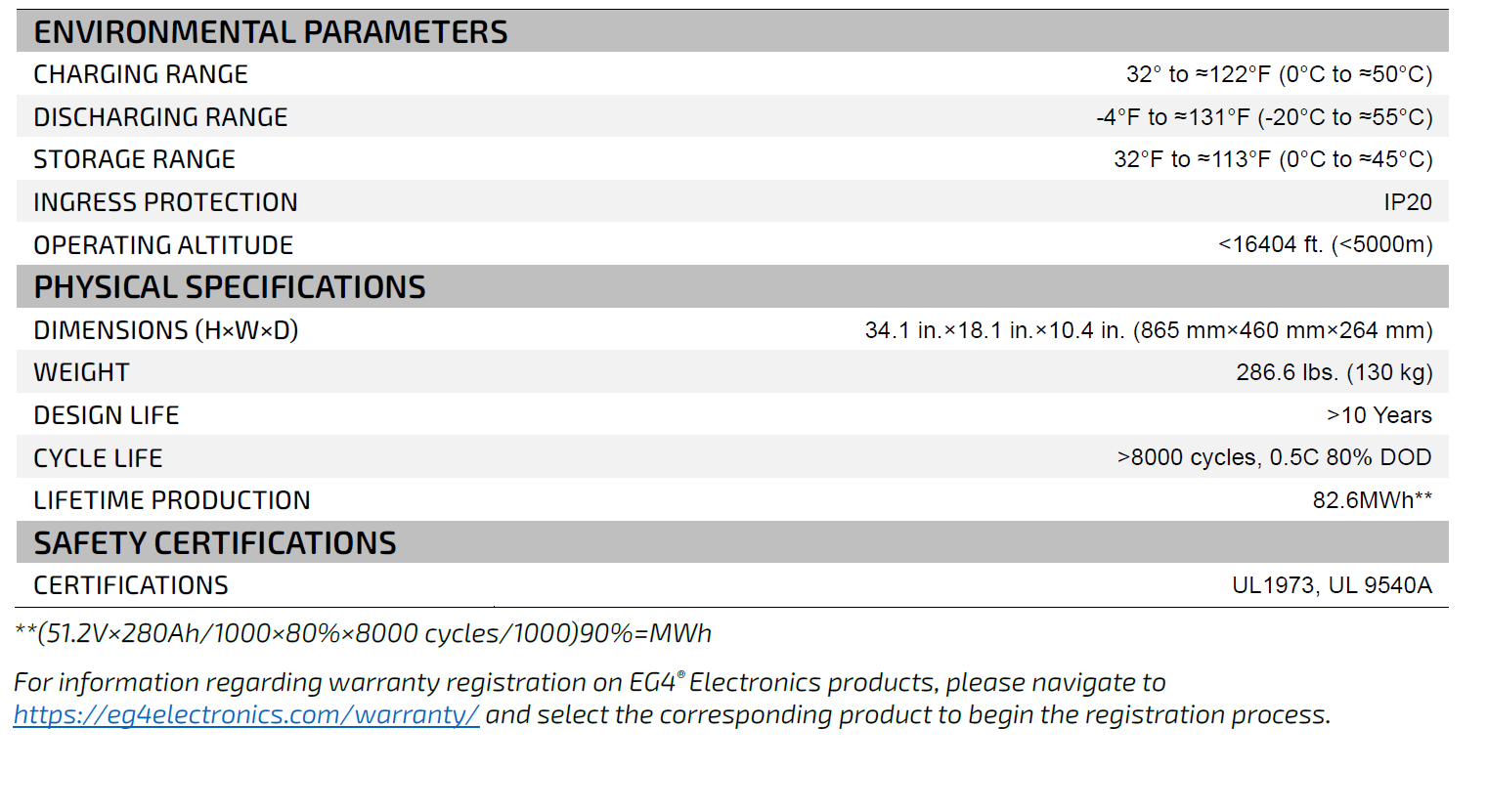 EG4 EG4LP48V280AHIDWMBV2 14.3kWh 280Ah 51.2V Lithium-Ion Battery - EG4LP48V280AHIDWMBV2 |