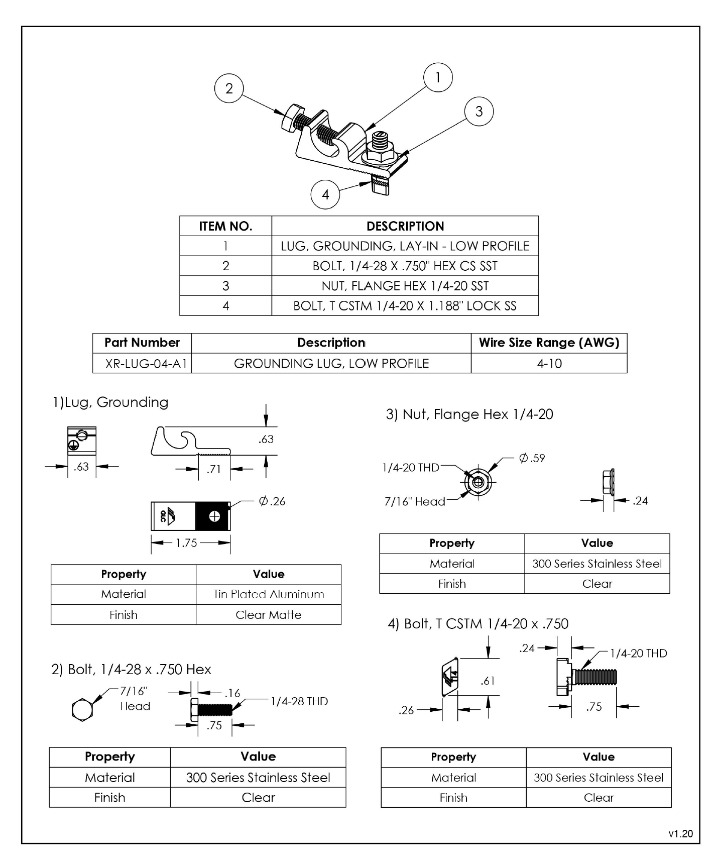 Loading... Please wait...| IronRidge IR-XR-LUG-04-A1 Grounding Lug, Low Profile (Priced as each) - IR-XR-LUG-04-A1 |
