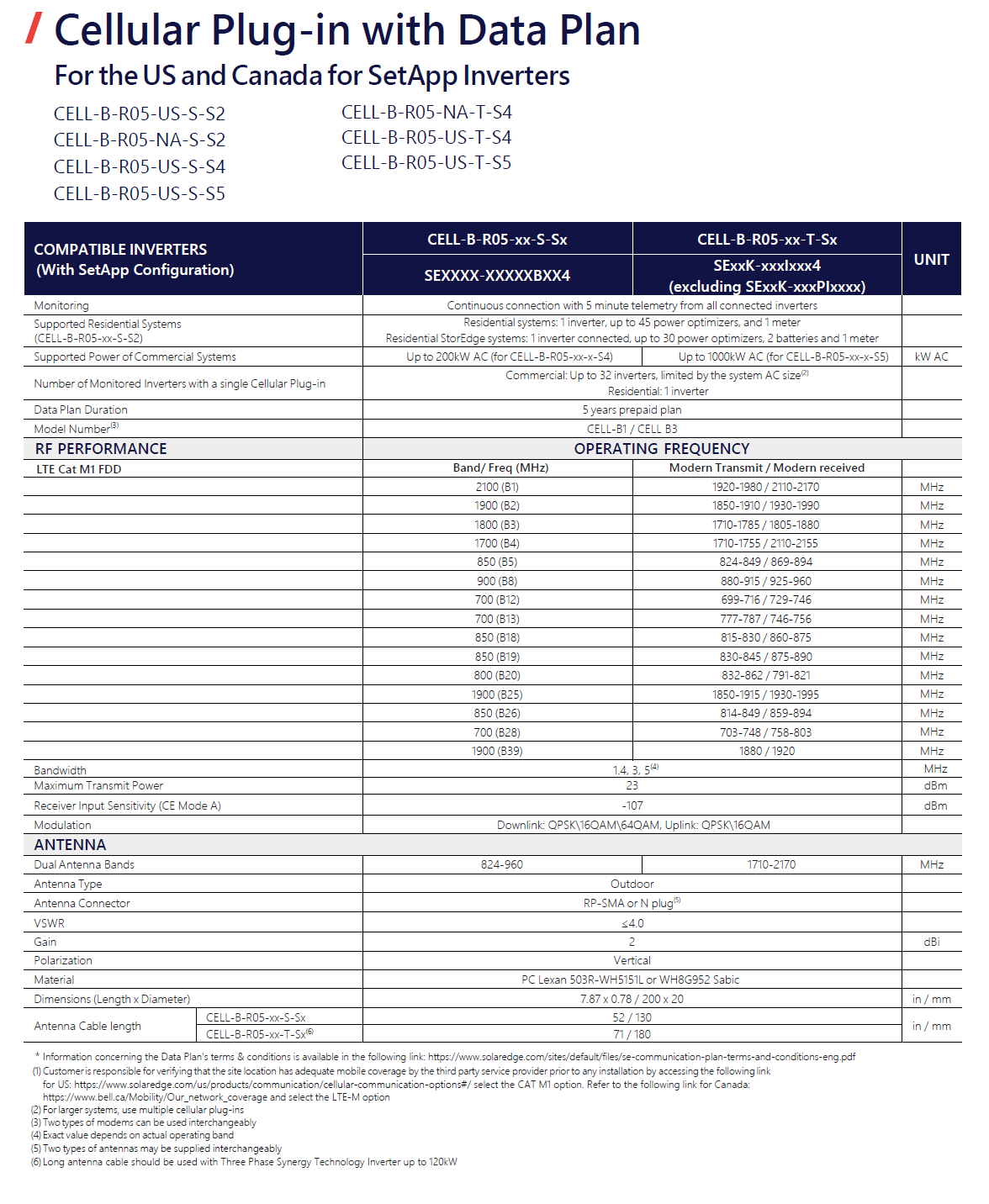 SolarEdge SE-CELL-B-R05-US-T-S5 Cellular Plug-in w/plan, AC²1000kW, 5 year plan - SE-CELL-B-R05-US-T-S5 |