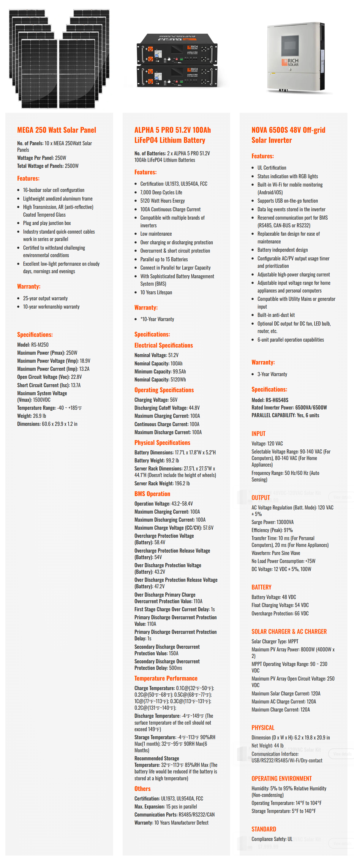 Loading... Please wait...| Rich Solar RS-CBK2500 2500W 48VDC-120VAC Solar Kit - RS-CBK2500 |