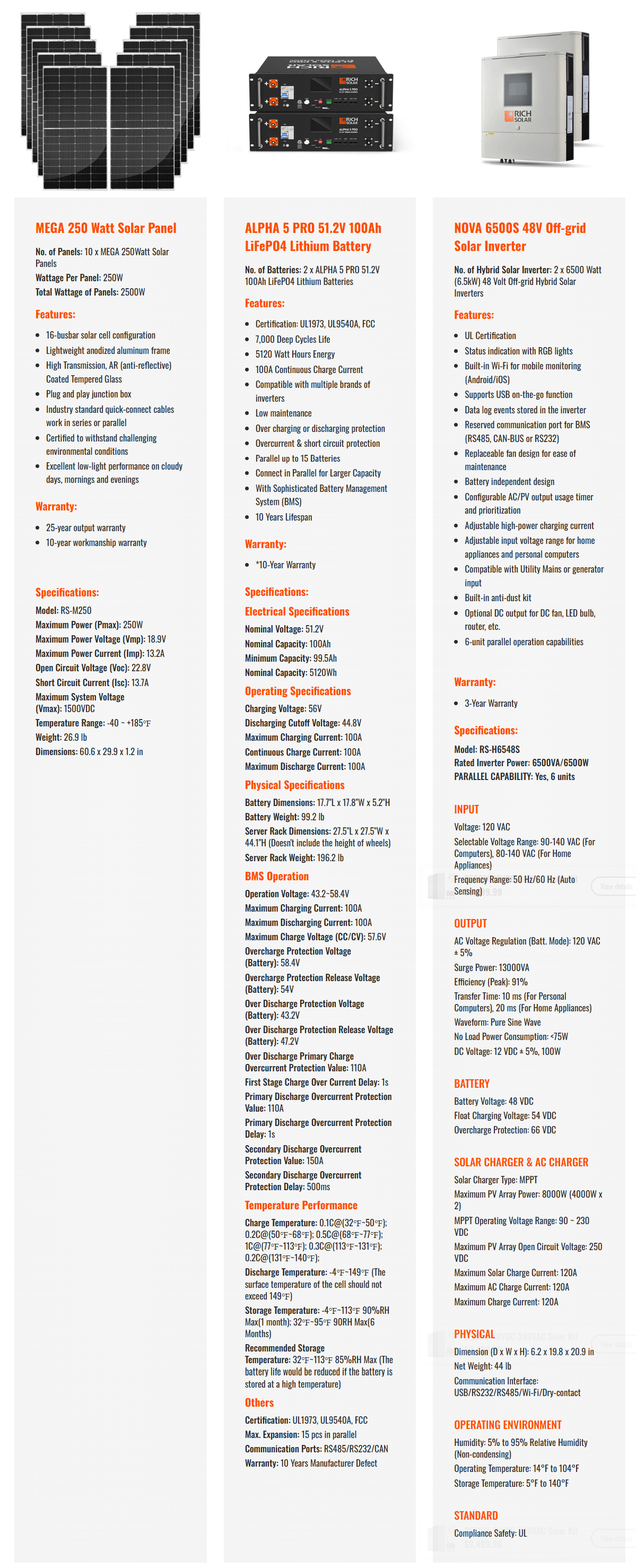 Loading... Please wait...| Rich Solar RS-CBK2500240 2500W 48VDC-240VAC Solar Kit - RS-CBK2500240 |