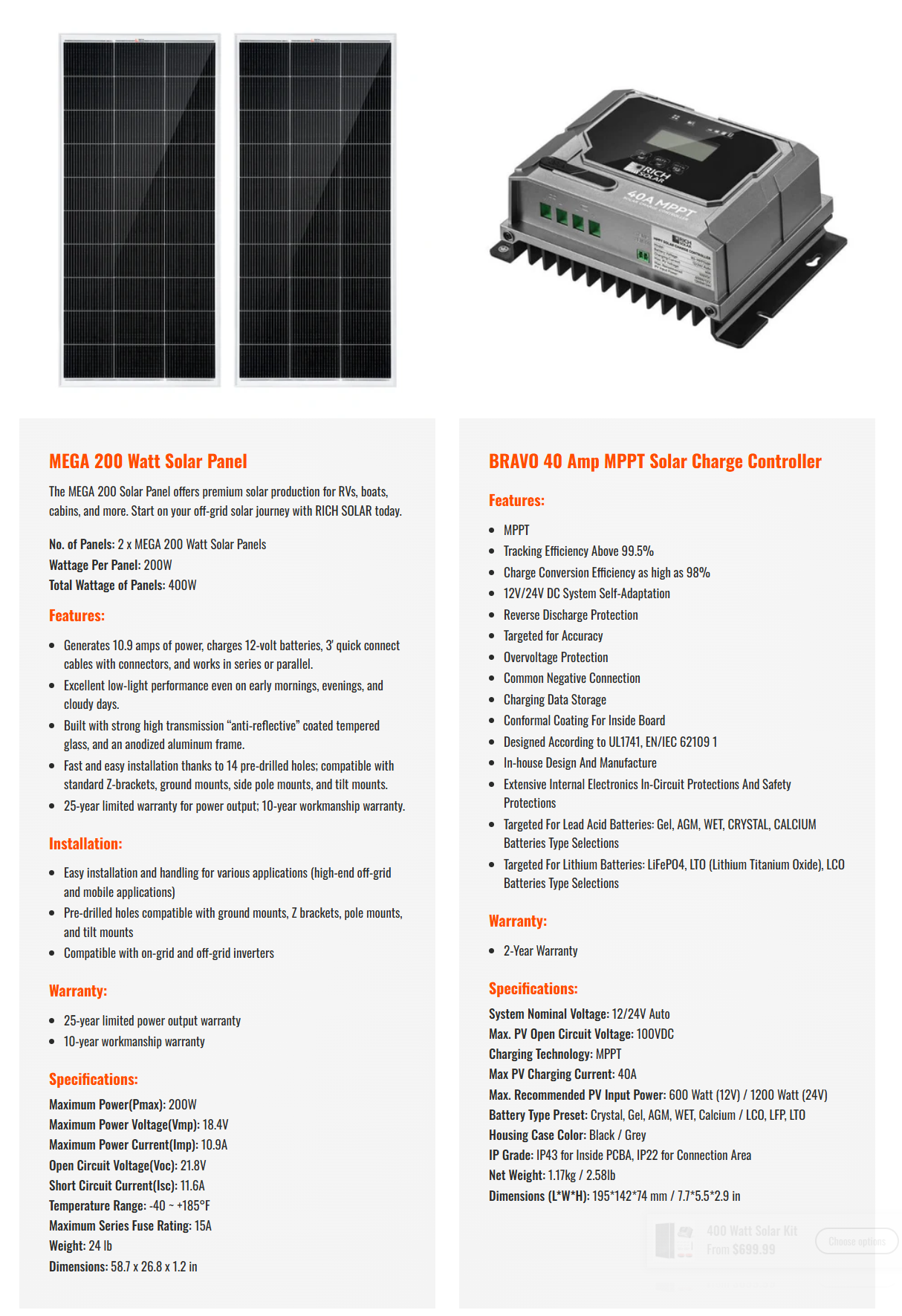 Loading... Please wait...| Rich Solar RS-K400D 400 Watt Solar Kit - RS-K400D |