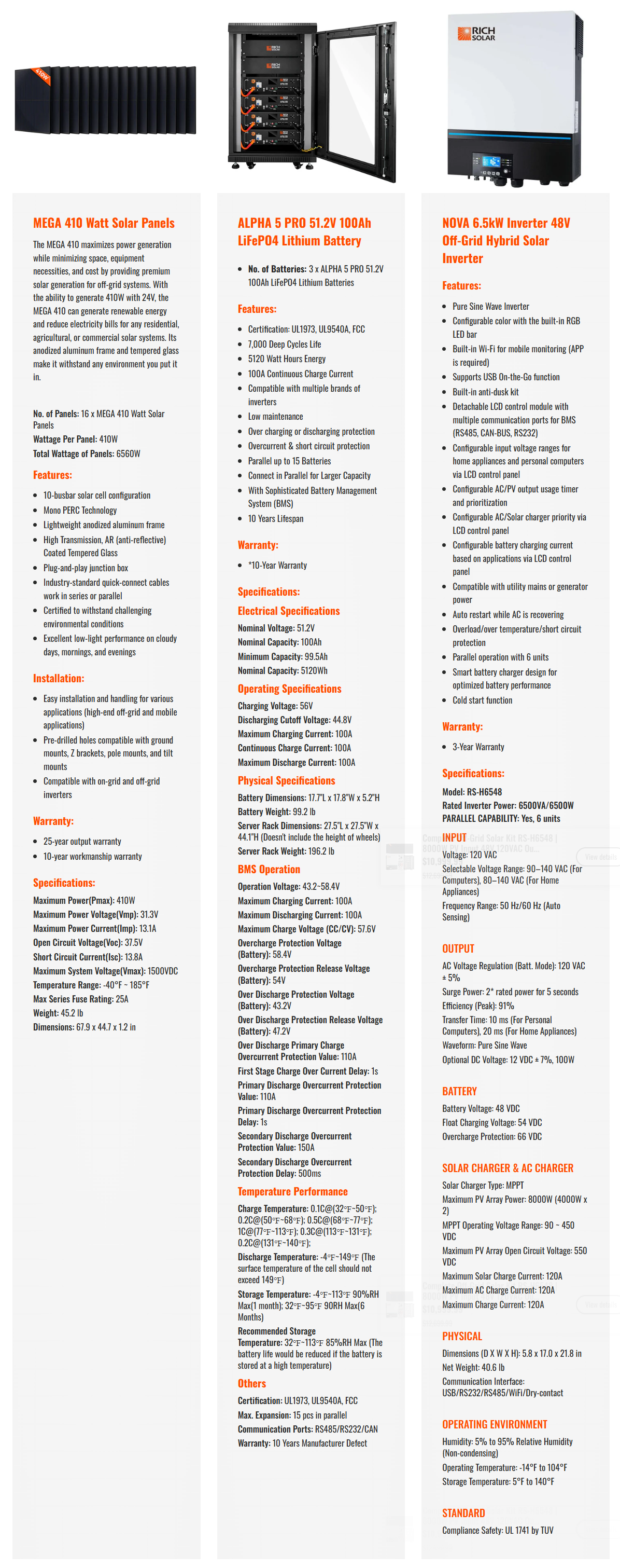 Loading... Please wait...| Rich Solar SRx3-H6548x1-M410x16 Complete Off-Grid Solar Kit RS-H6548 | 8000W PV Input 48V 120VAC Output + 6560(16x410) Watt Solar PV [KIT-SR0001] - SRx3-H6548x1-M410x16 |