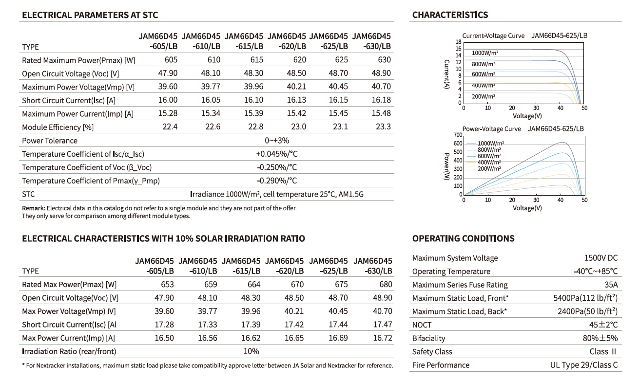 Loading... Please wait...| JA Solar JAM66D45-620/LB 620 W N-Type TOPCon Bifacial Solar Panel – ~23.0 % Efficiency, Dual-Glass, 12-Yr / 30-Yr Warranty - JA-JAM66-D45-620LB |