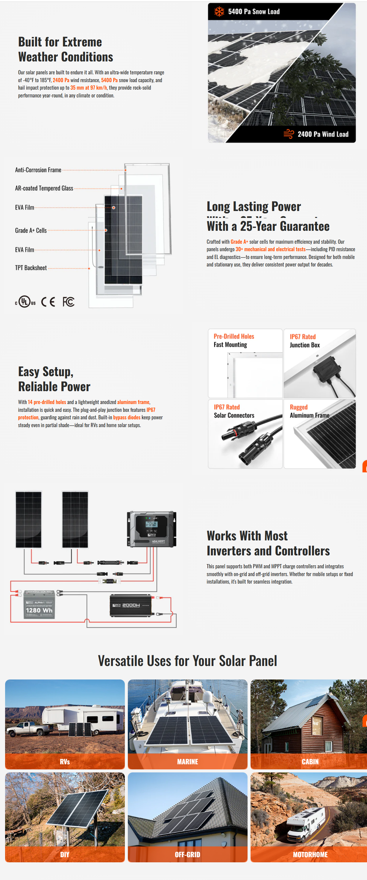Loading... Please wait...| Rich Solar RS-M200 MEGA 200 | 200 Watt Solar Panel | Premier 12V Off-Grid Solar Panel for RVs Cabins, Boats | 25-Year Output Warranty | UL Certified - RS-M200-Main |