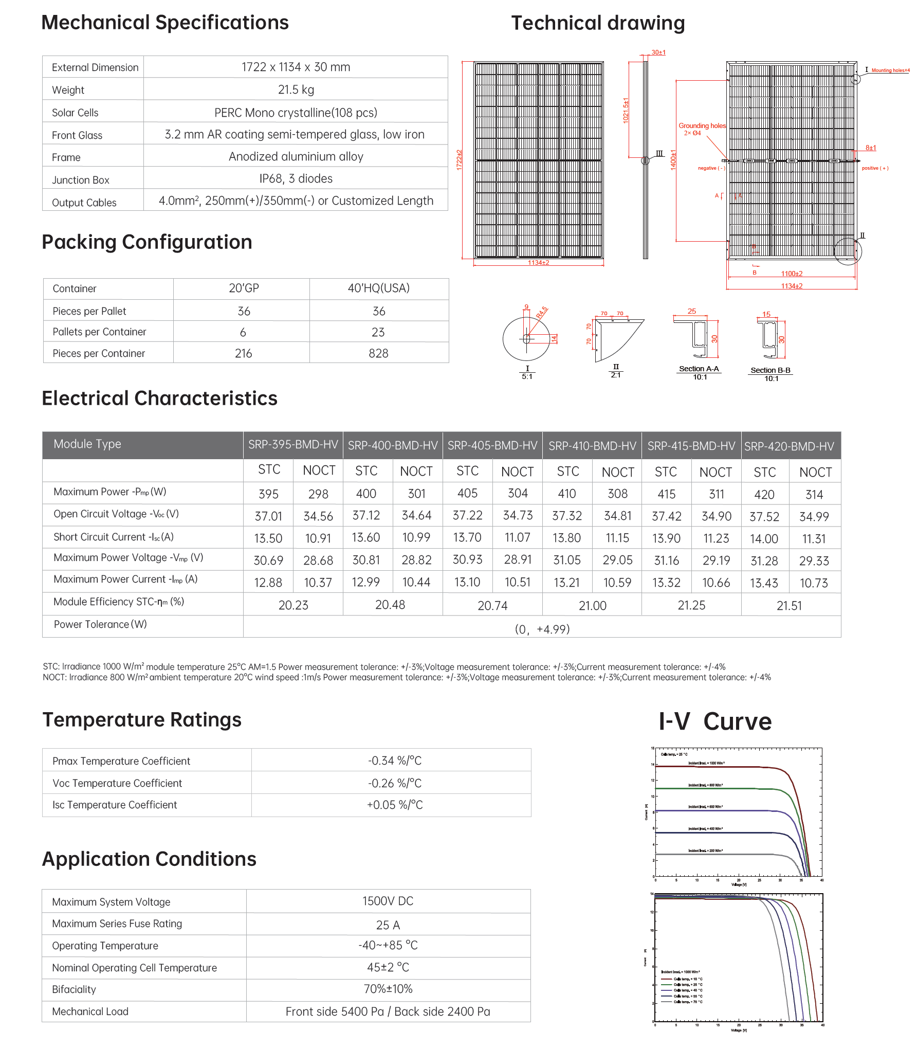 Loading... Please wait...| Seraphim SECO-SRP-410-BMD-HV 410 W Black-on-Black Bifacial Half-Cell Solar Panel – ~21.8 % Efficiency, 15-Yr / 30-Yr Warranty - SRP-410-BMD-HV |
