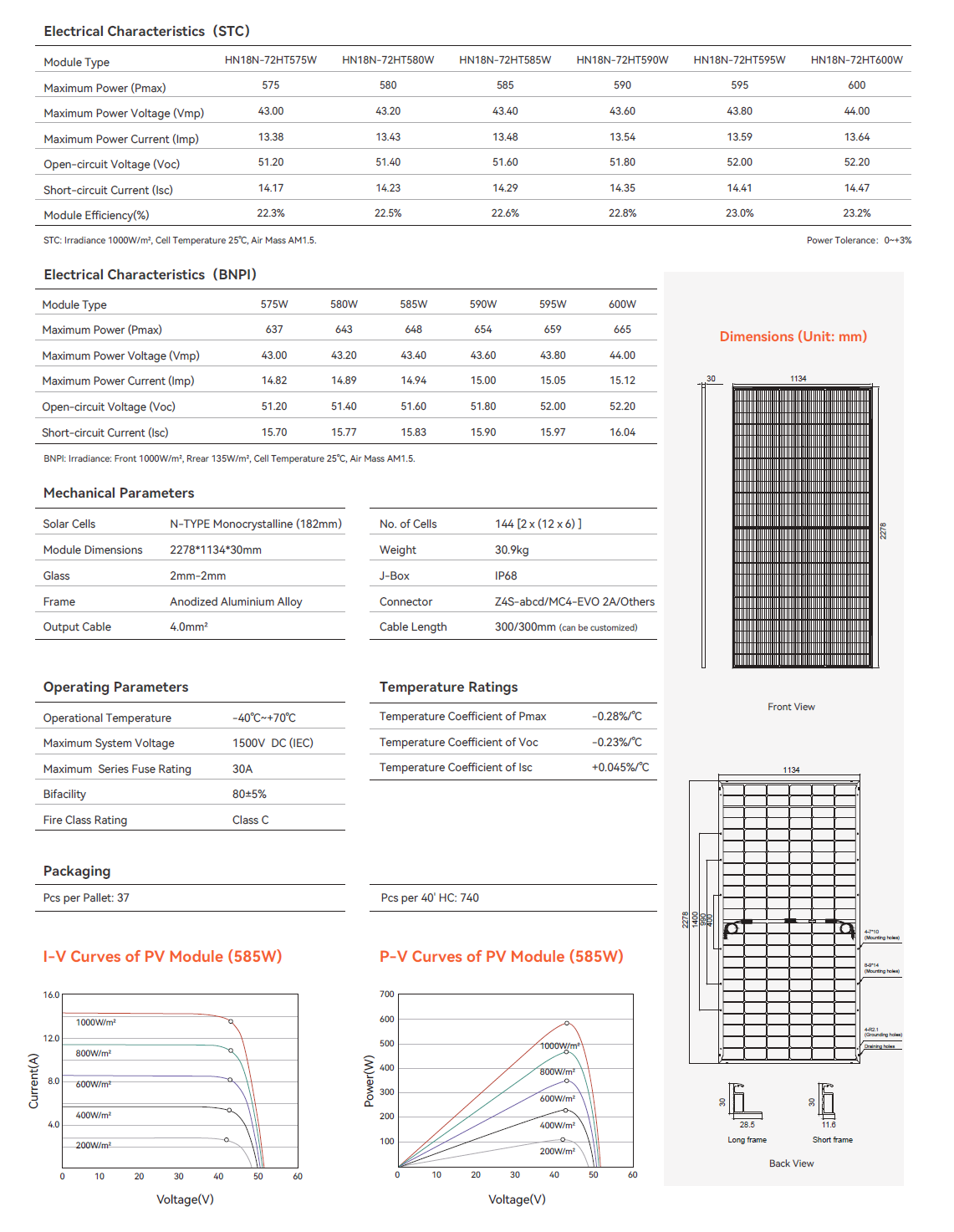 Hanersun HN18N-72HT585W 585 W N-Type TOPCon Bifacial Module – ~22.65% Efficiency, 15-Yr Product / 30-Yr Performance Warranty - HN18N-72HT585W |