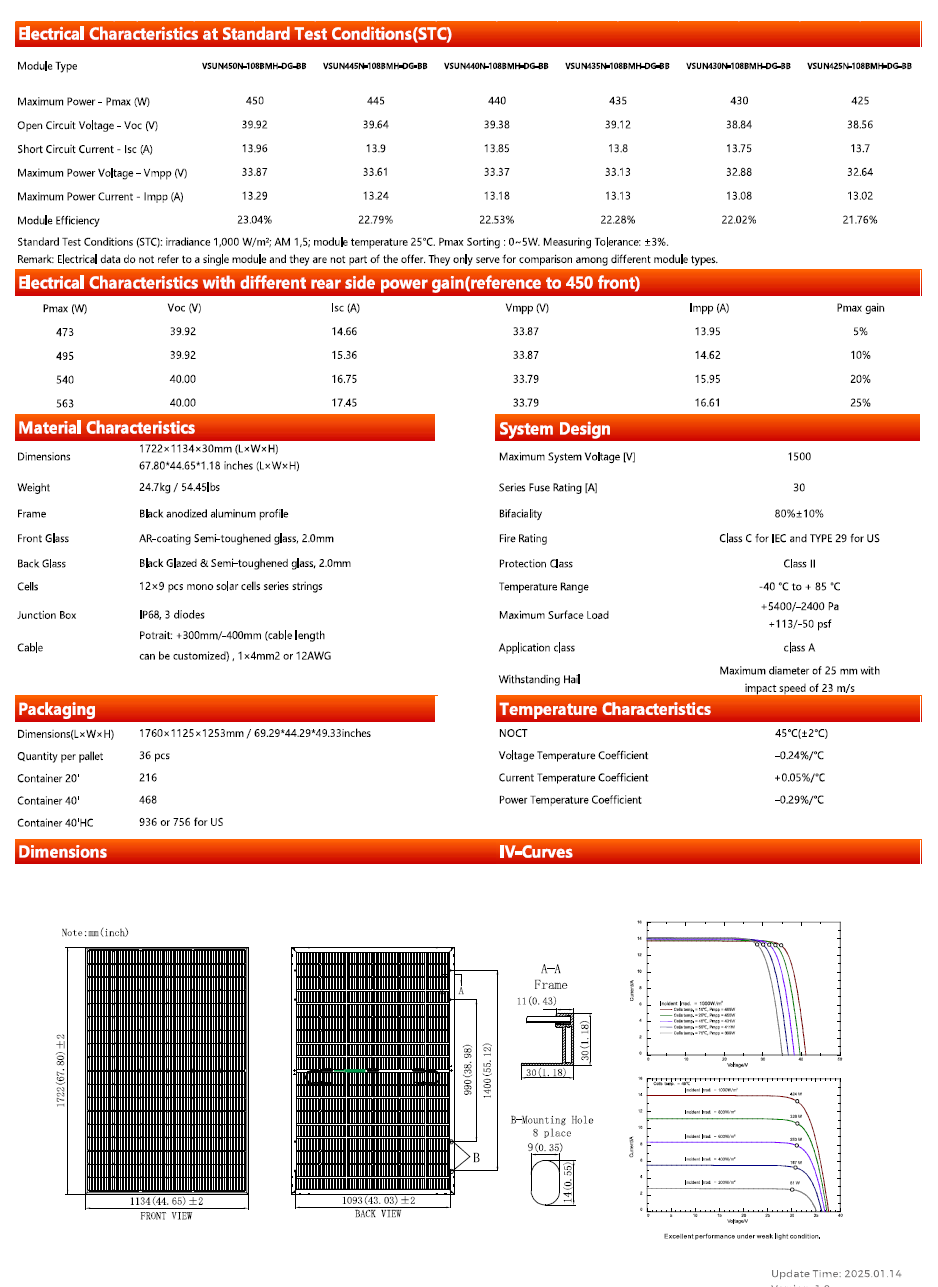 Loading... Please wait...| VSUN VSUN440N-108BMH-DG-BB 440 W All-Black N-Type TOPCon Bifacial Solar Module – ~22.5 % Efficiency, 25-Yr Product / 30-Yr Performance Warranty - VSUN440N-108BMH-DG-BB |
